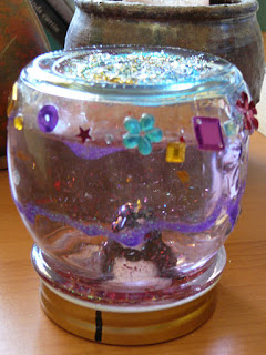 they stuffed handful after handful of glitter into those snowglobes, as they dressed them up in stickers and sequins and colourful ribbon and glitter glue.