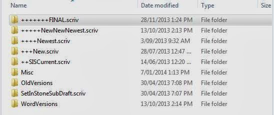 And lest you should think, Oh, that’s not so many versions, allow me to point out that within each of these folders – even those optimistically labelled ‘Final’ and ‘SubDraft’ – there are also many versions. By way of example, here is what you would find if you were to open the folder entitled ‘OldVersions’: